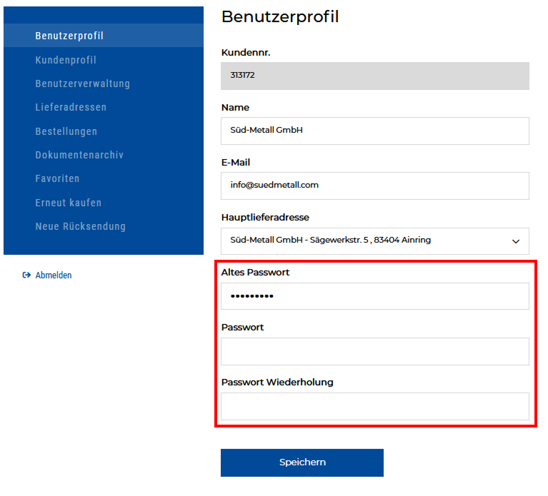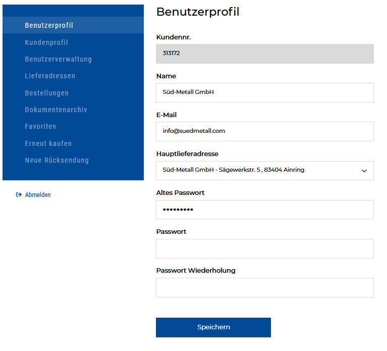 Kundennummer, Name, E-Mail Adresse, Hauptlieferadresse und Passwort.