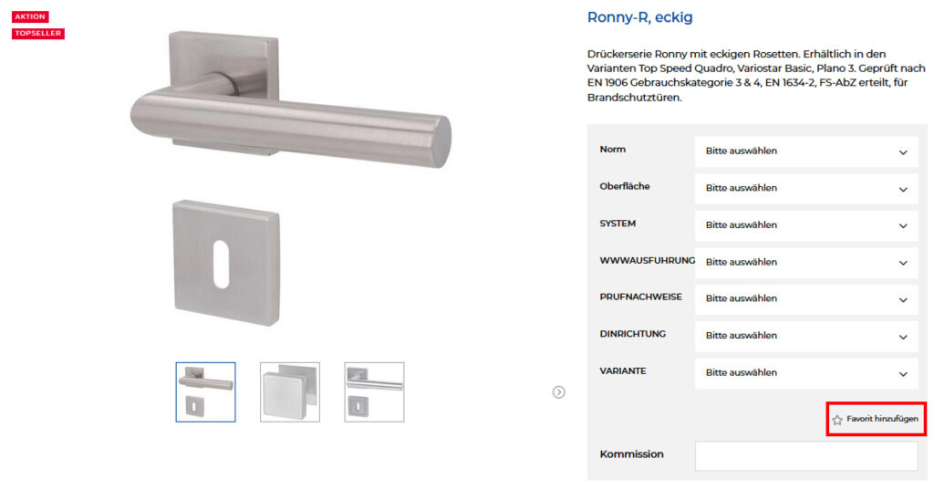 Um ein Produkt zu den Favoritenhinzuzufügen, klicken Sie einfach auf den Stern „Favoriten hinzufügen“.