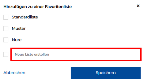 Fügen Sie Ihren neuen Favoriten einer Liste hinzu. Sie können auch direkt eine neue Favoritenliste erstellen. Klicken Sie hierfür auf „Neue Liste erstellen“.